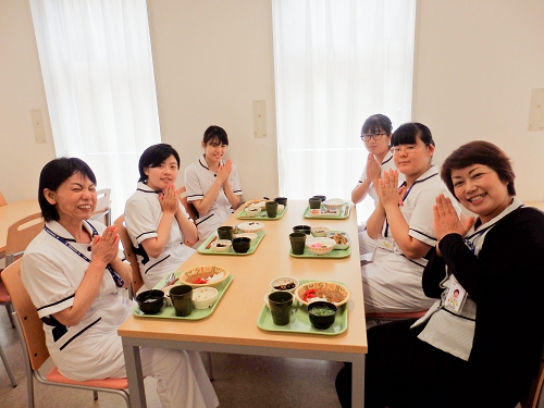 職員達と昼食を共にし、病院の一員として感じられる時間に