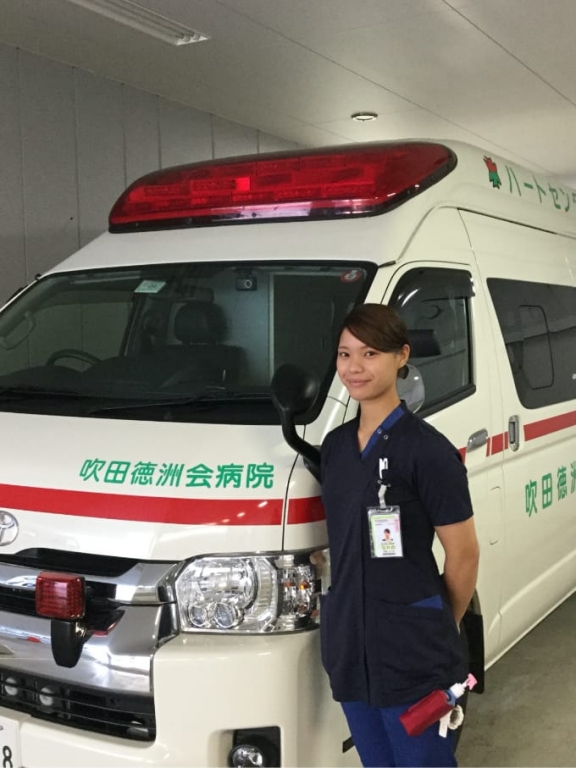 業務内容は様々で、救急隊からのホットライン対応、院内急変時の対応、ウォークインで来た患者さんのトリアージ、検査周り、そして7月からは当院の救急車での施設間搬送が始まり、プレホスピタルにも力を入れています。多職種の人と関わり合いな0ら業務を行うことができ少しずつ活躍の場が増えてきているのを実感しながら働いています。少しでも気になったらぜひ一度見学に来てください!